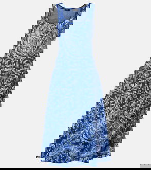 Relax into the Etta Dress. The silk-blend fabric has been shaped to a longline t-shirt silhouette with cap sleeves. With large scale tie dye and side splits for an easy feel. This one works for any occasion.