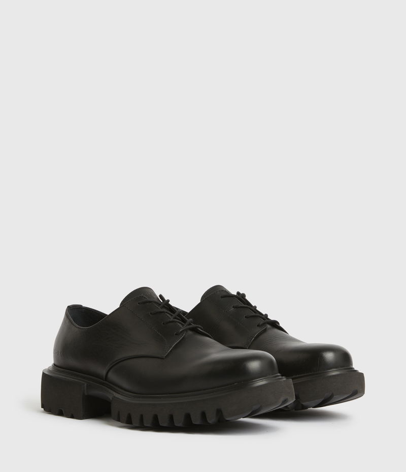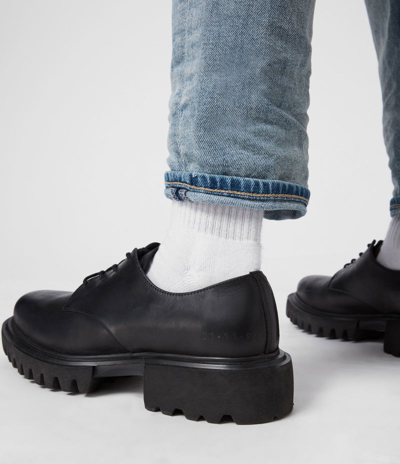 The Evan Derby Shoes. They're crafted from robust leather. With a chunky rubber sole. They go perfectly with our cropped trousers.