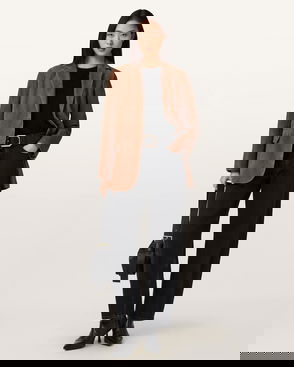 A soft silhouette made from suede – get to know the Freya Jacket. The draped construction features a funnel neck and slim shaping throughout. The lightweight nappa even has a little bit of stretch in the sleeve. Complete with raw-edge detailing for a classic AllSaints finish, this jacket looks great paired with our slip dresses.