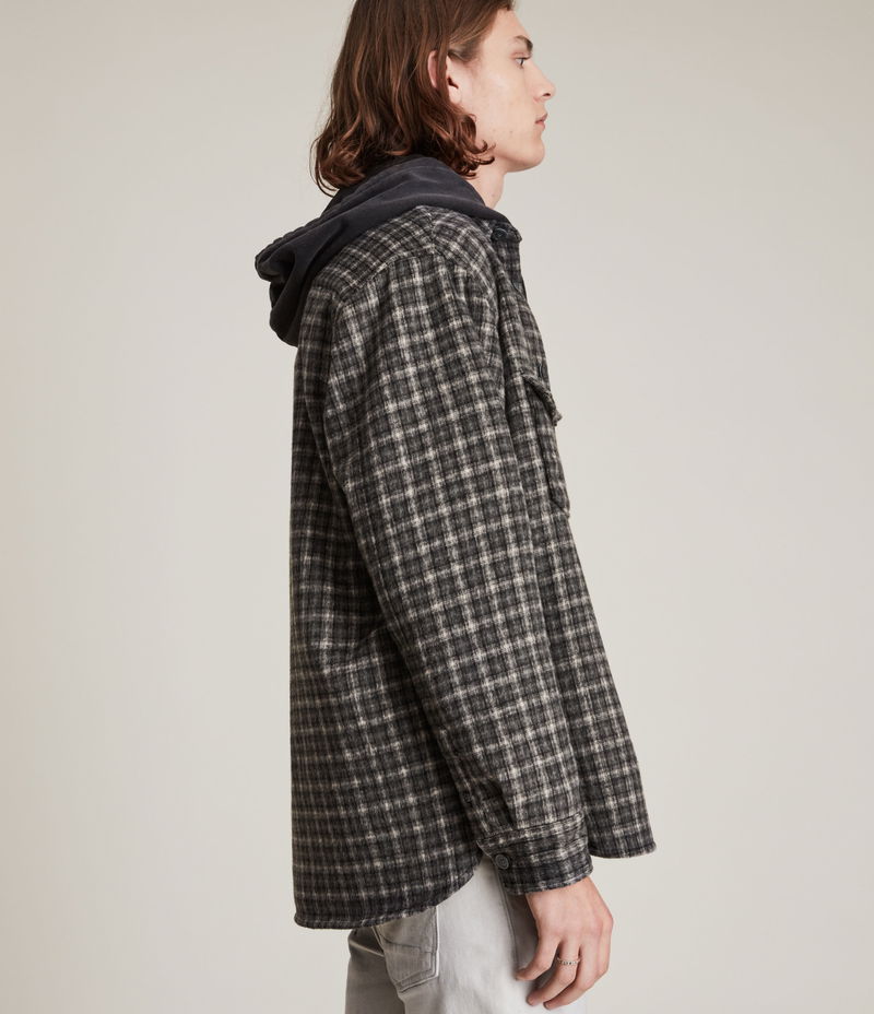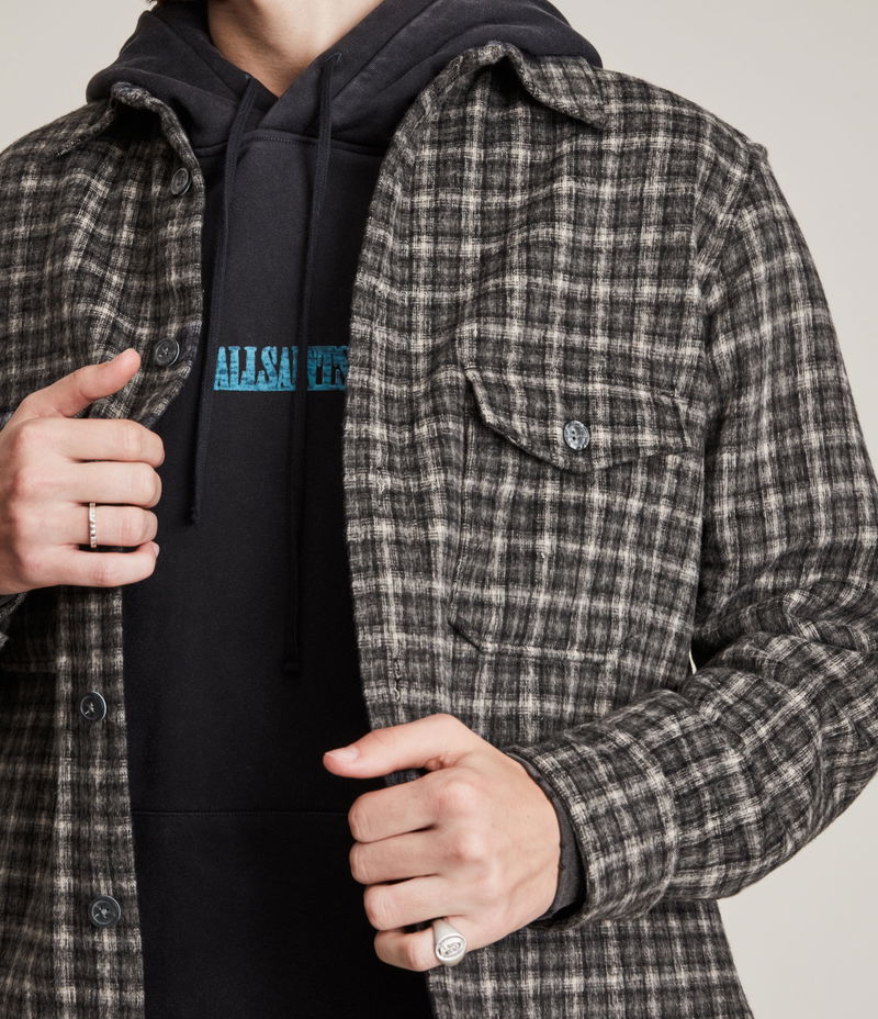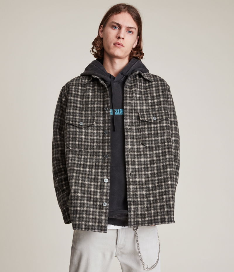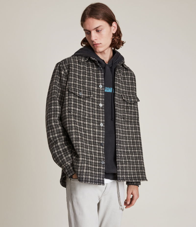 Oversized, it's the perfect top layer. The Guerra Shirt. Cut from a wool blend fabric, in military style silhouette. It features slim checks all over.