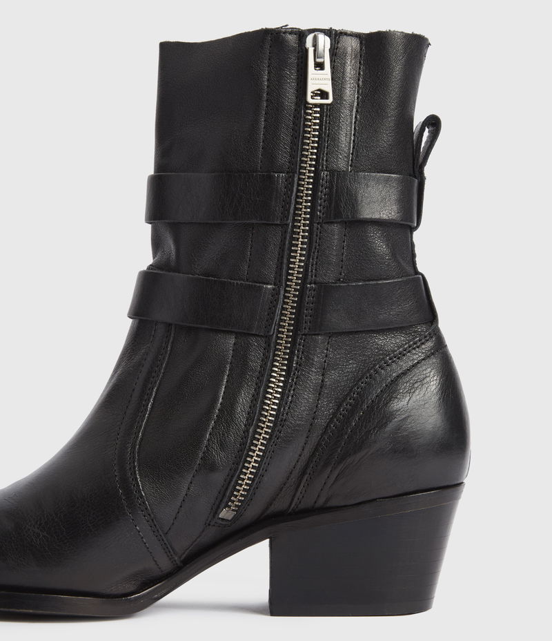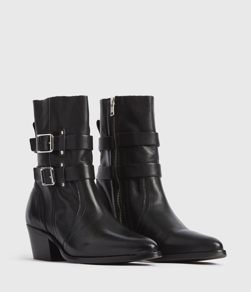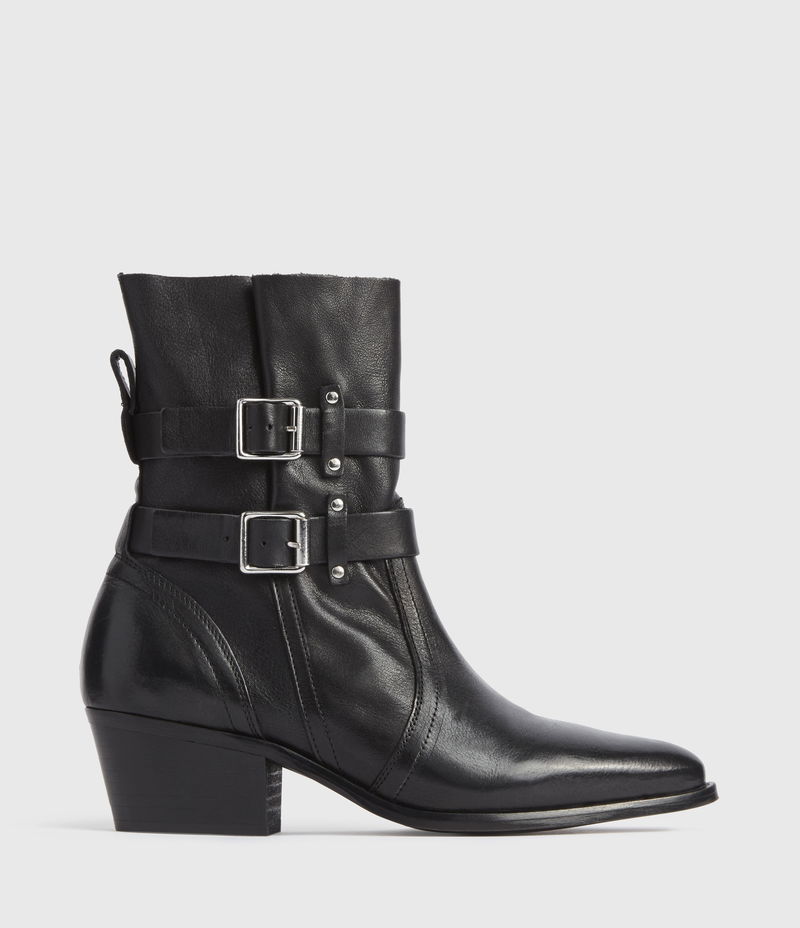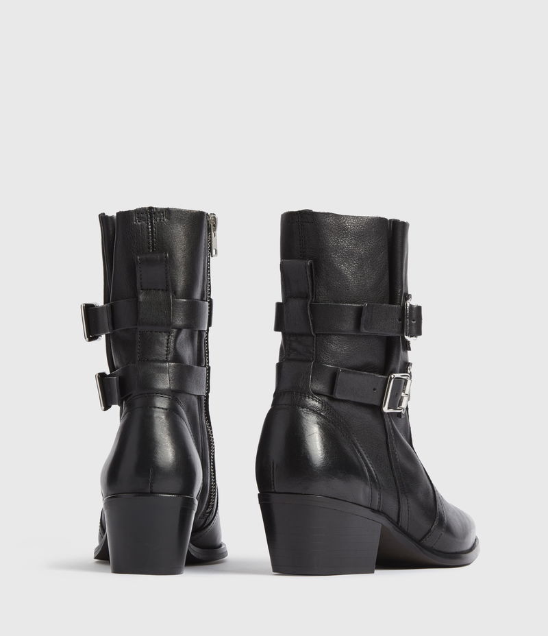 Western boots. They never get old. Crafted from leather with functional buckles and a sleek pointed toe, the Harriet Boots will go with everything.