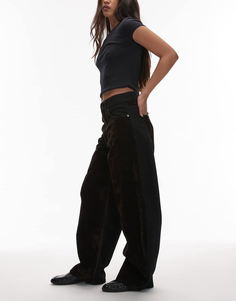 Helena Flocked Wide Leg Jean In Brown