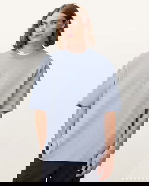 The super relaxed shape works time and time again. It's cut from organic cotton with exposed overlock seams and thick ribbing on the neckband. Tees with a premium feel bring an instantly elevated feel to casual dressing.
