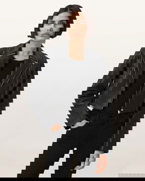 The Kara. A classic biker jacket. Crafted from smooth leather. With metal hardware. And leather zip pulls. Now where did you leave your motorbike?