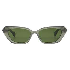 Looking for sunshine? Be prepared with the Kitty Sunglasses. The glossy green frame is shaped to a rectangular cat eye shape with a smokey grey lenses. Complete with our signature hardware and our logo subtly embossed, it's all in the details.