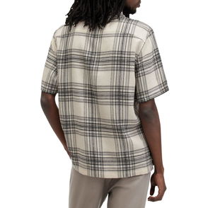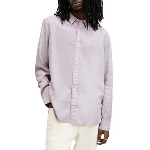 Button closure. Button-down collar. Long sleeves. Curved hem. Heavy garment wash. Ramskull embroidery.