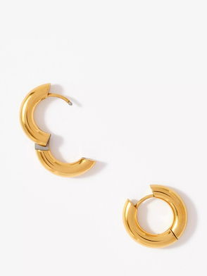 The Laio Earrings. Small crystal details. On a hoop. That hugs your ears. In a brushed gold-tone. Welcome them to your jewellery collection.