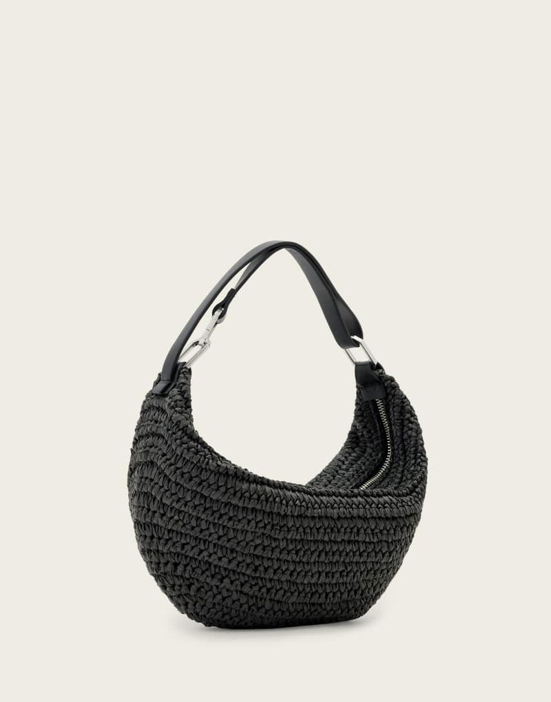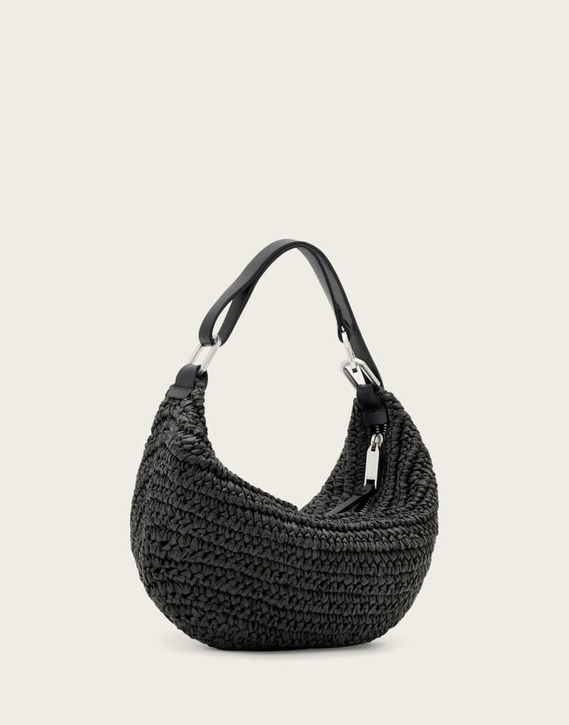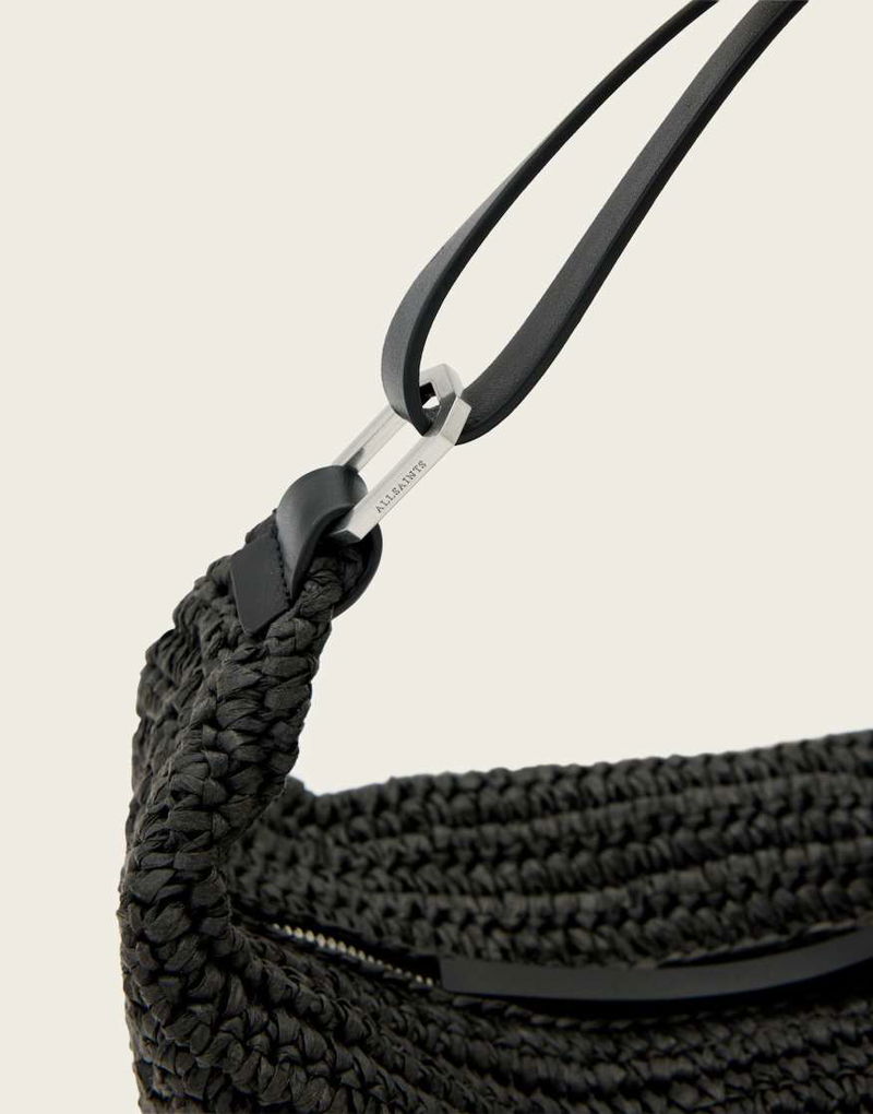 Luna Crecent Raffia Bag In Black