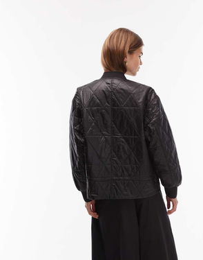 Rose-tinted metallics are always a good option. This is the relaxed Mika Puffer Jacket. The angular quilting is a modern update. Filled with recycled duck down and feathers - it'll keep you warm.