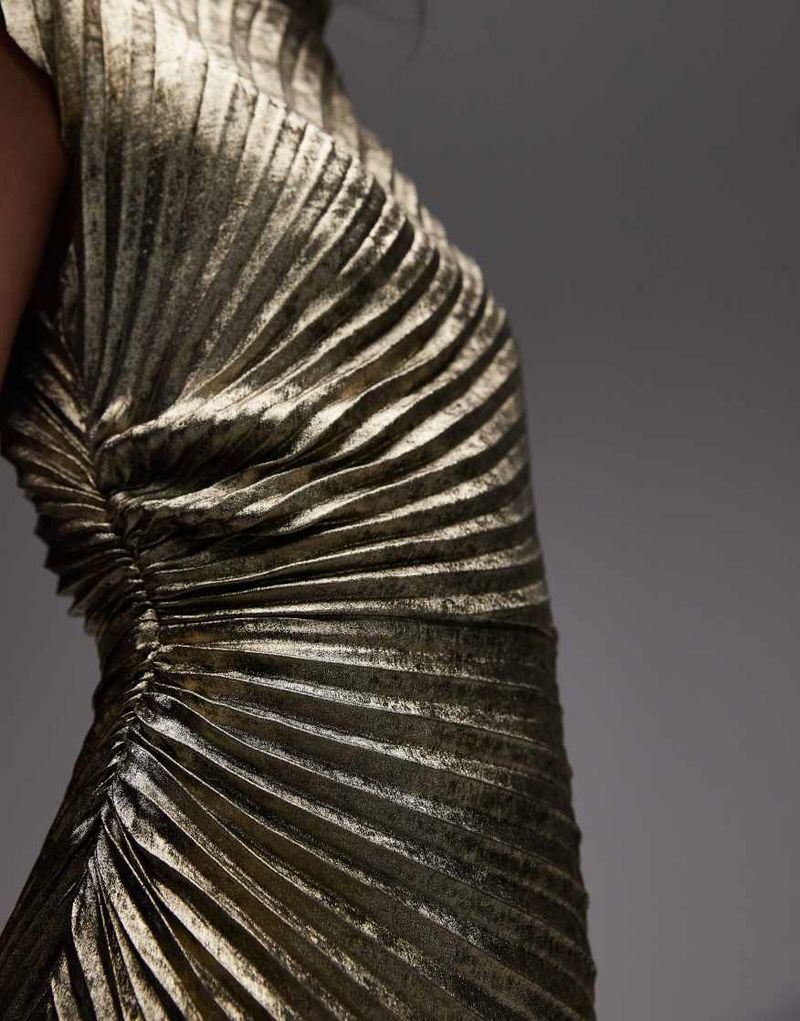 Rayanna Pleated Maxi Dress In Gold