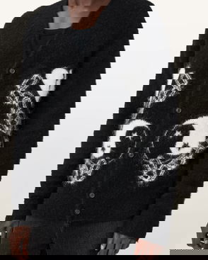 The Renn Cardigan has an easy feel. The yarn, which is blended with alpaca wool, has been brushed for tactile appeal. Shaped to an easy fit with ribbed trims and AllSaints buttons down the centre. It's a great layer to add over our signature graphic and oversized tees.