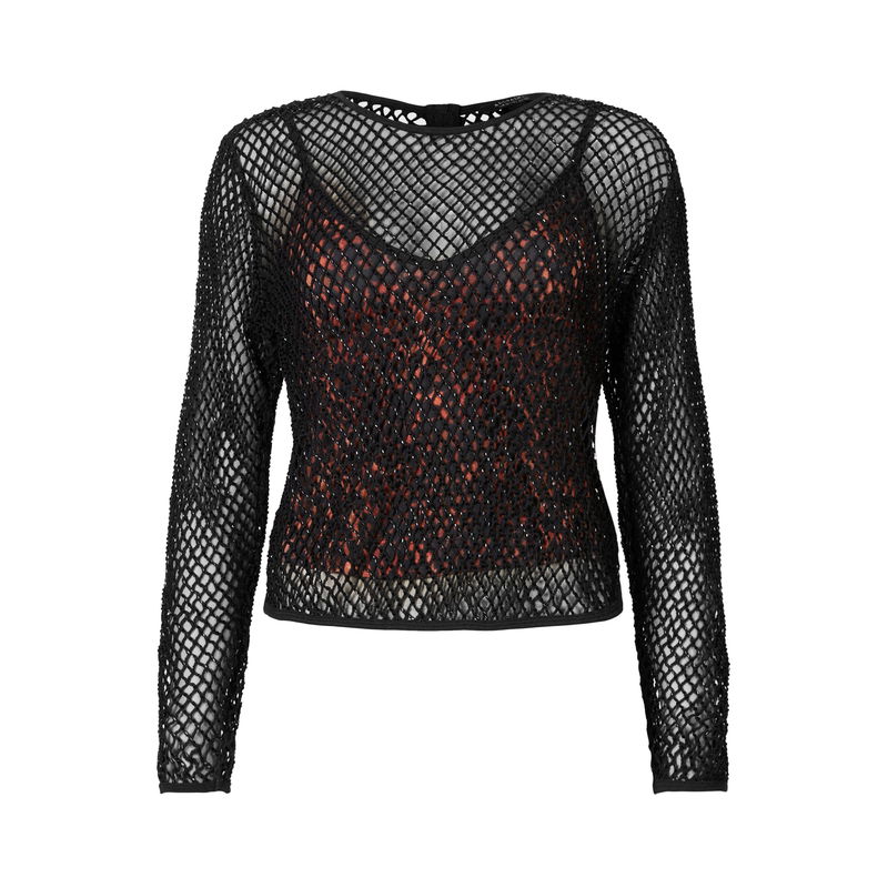 Chic, stylish and edgy, All Saints boasts an on trend ensemble, expertly expressed in this Rosalie Anita Top. With its embellished mesh and leopard print lining this Anita top boasts a grungy yet graceful essence. This striking silhouette instantly sets you apart making it ideal for nights out and parties.