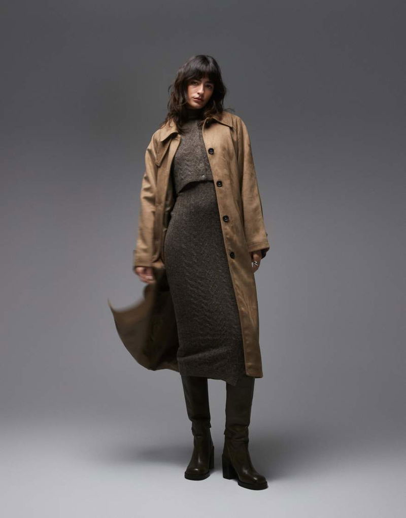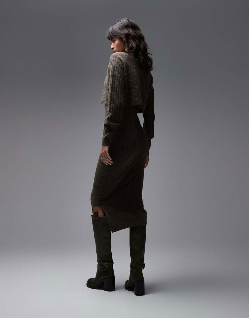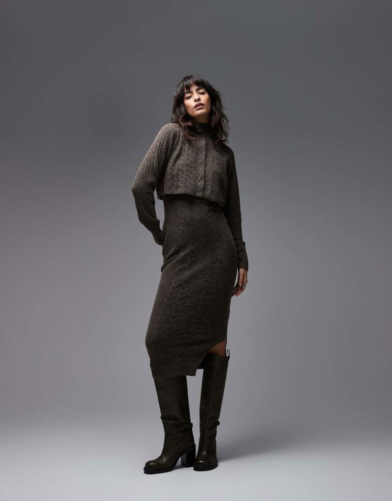 Sabine Co-ord Knit Dress & Cardigan Two Piece In Brown
