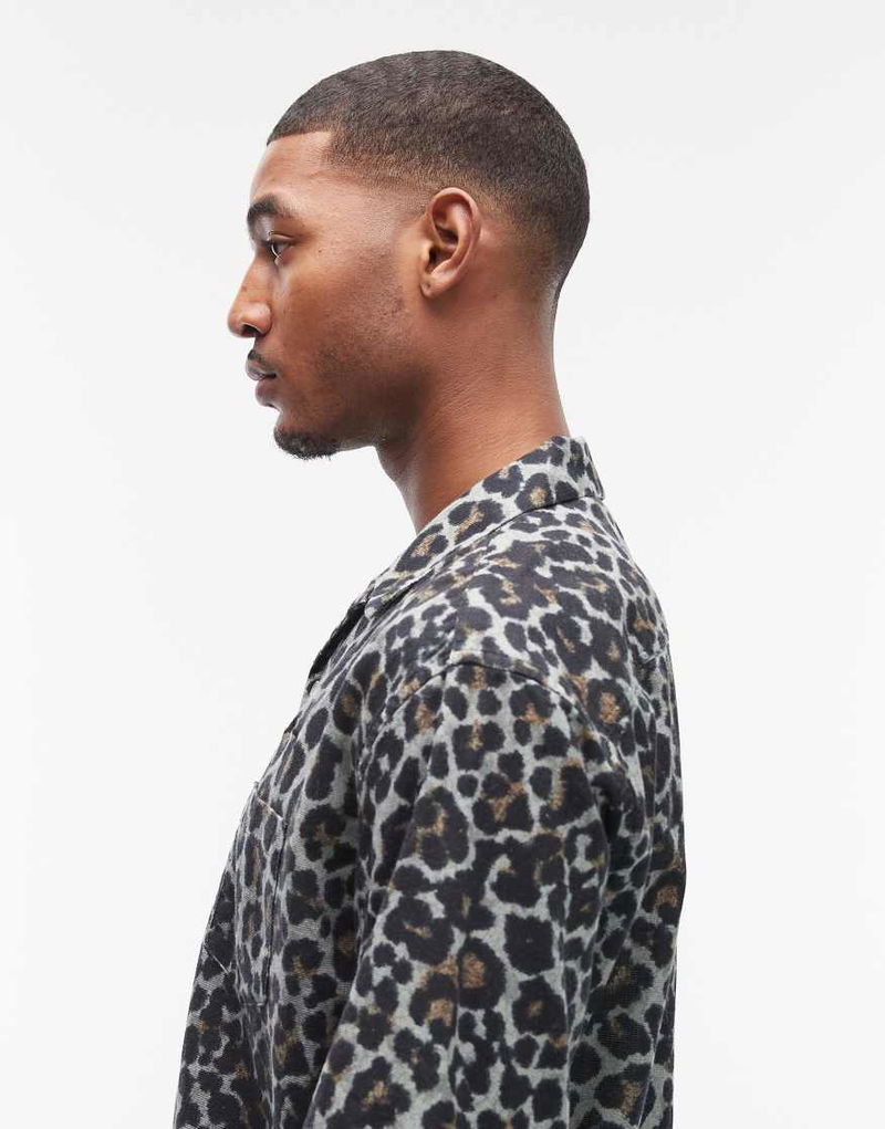 Silesia Short Sleeve Leopard Print Shirt In Grey