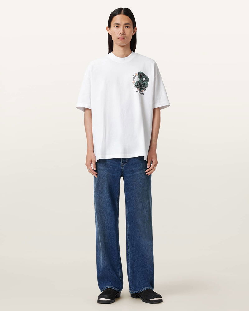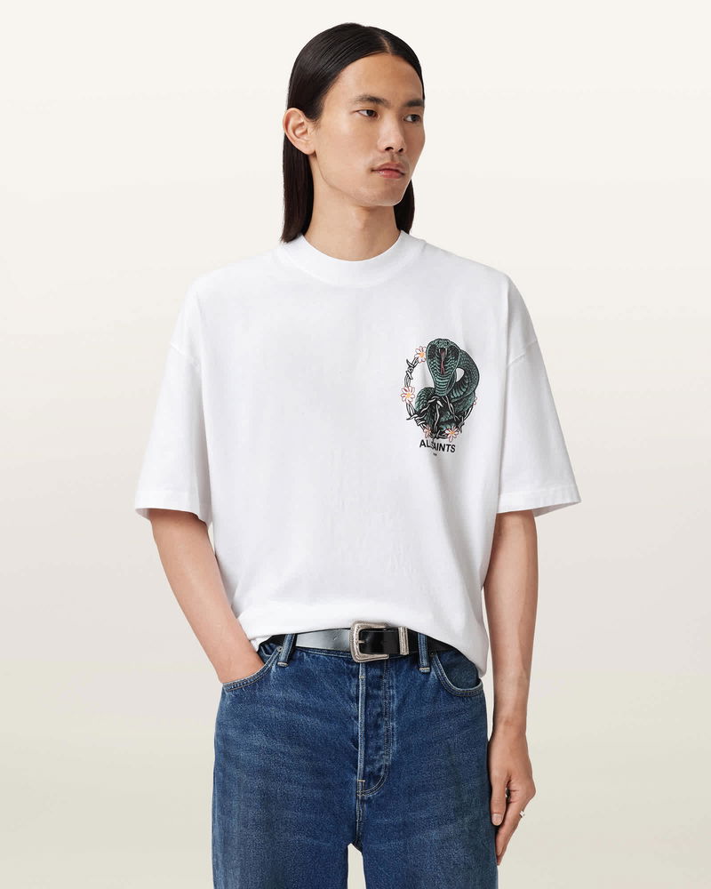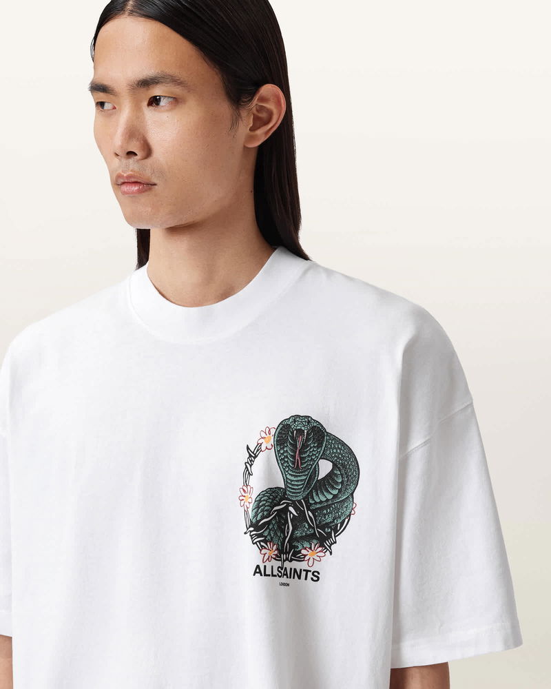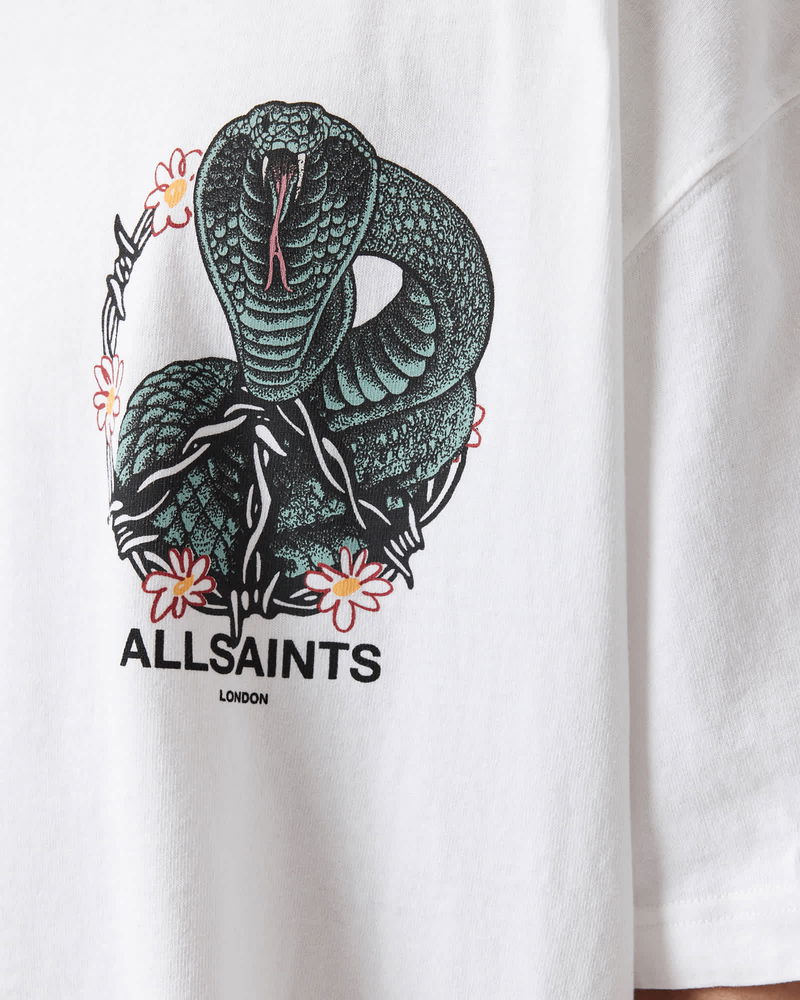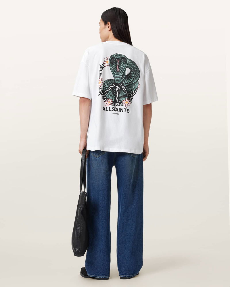 The oversized graphic tees are a wardrobe essential. Paired with jeans or shorts, the Snakebite T-Shirt belongs on weekend city breaks.
