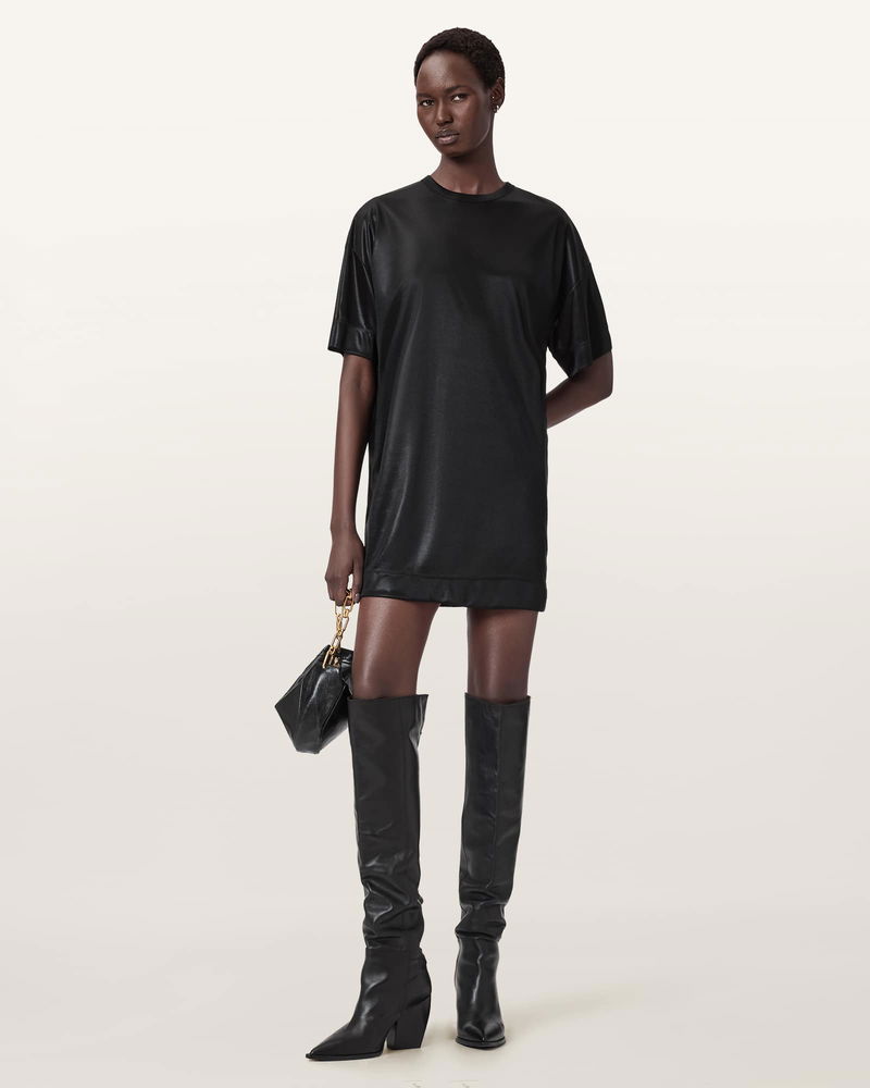Sparkle your way through occasion season with our aptly named Sparkle T-Shirt Dress. Add some attitude with a leather clutch bag and our statement knee-high boots.