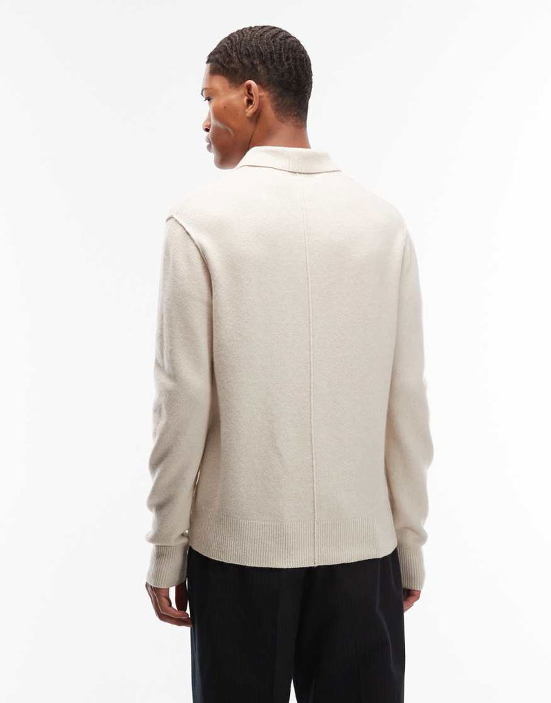 Statten Long Sleeve Logo Knit Polo Jumper In White