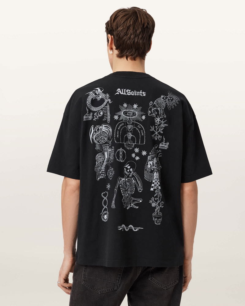 Unable to find the right tee for your next weekend away? Wake up from your shopping nightmare with our Terra Oversized T-Shirt, an AllSaints gothic hallmark.