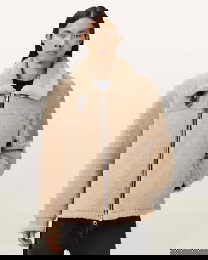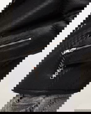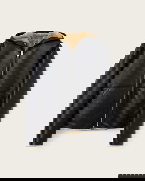 The Terro Jacket. Crafted from British shearling. With metal hardware. And a biker belt. It's heavyweight and warm. Ideal for the coming months.