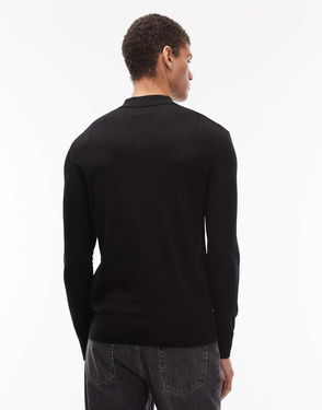 Our Thoma style strikes the perfect balance between a knit and a polo shirt. It's shaped from organic cotton with a slightly open ribbed stitch making it perfect for the transition between seasons just add tailored trousers.