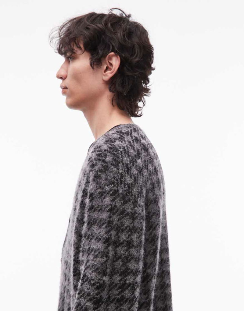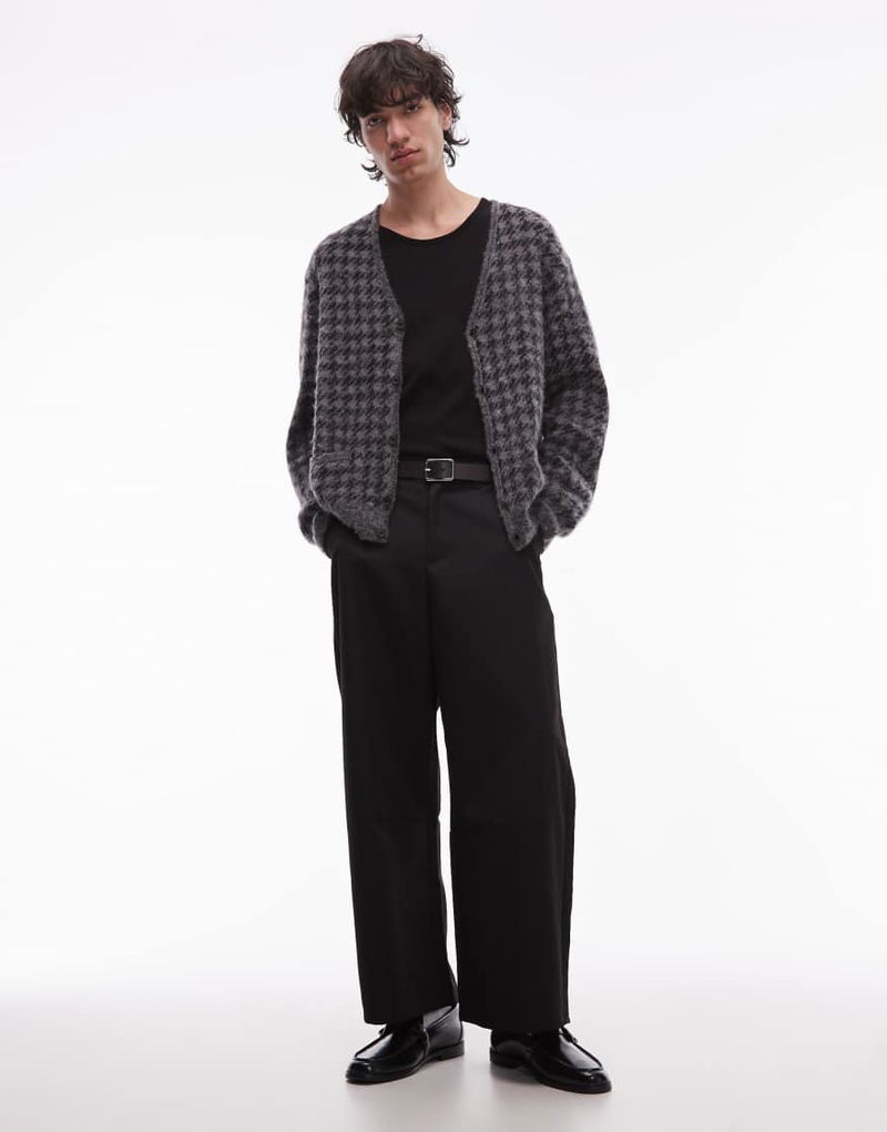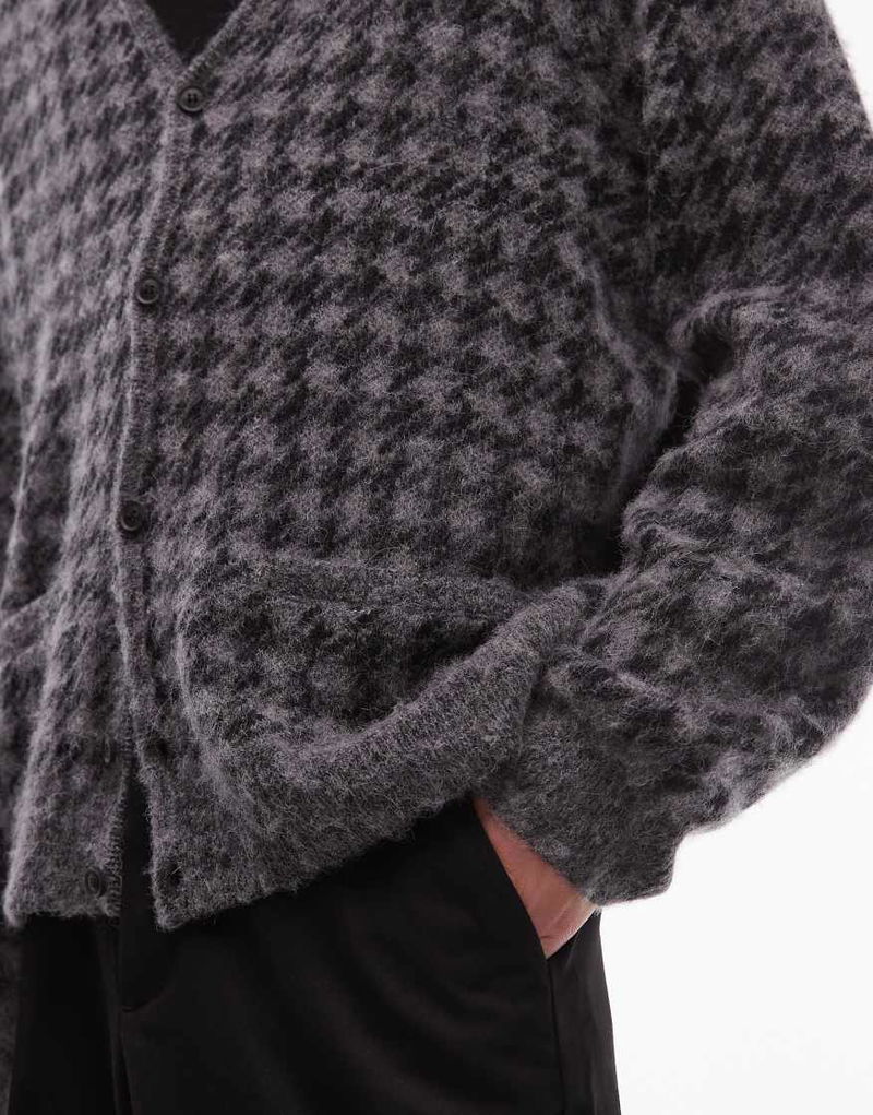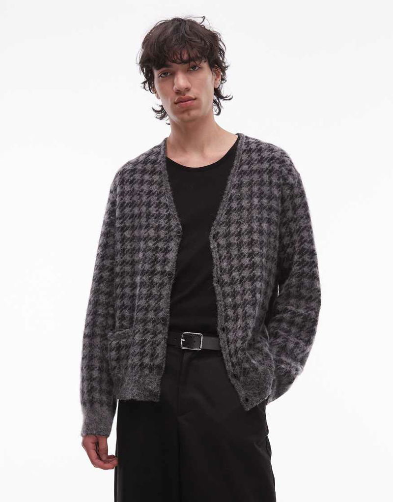 Zain Check Cardigan In Grey