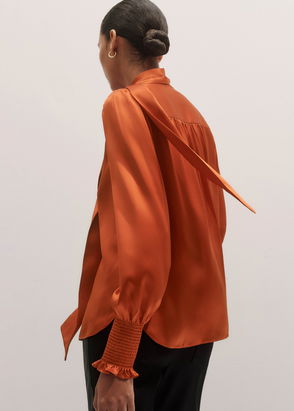 Silk Winter Floral Print Blouse + Tie Flame Orange/Ginger Orange/Multi