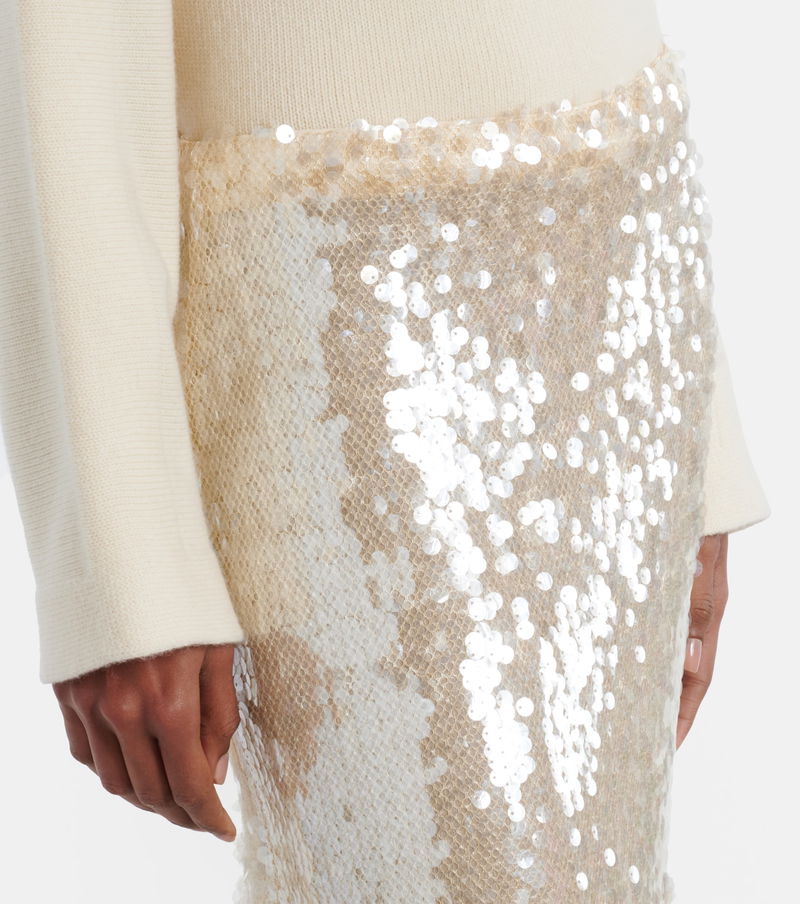 Sequin-Embellished Mesh-Overlay Maxi Skirt