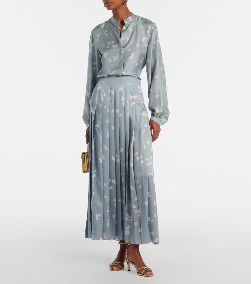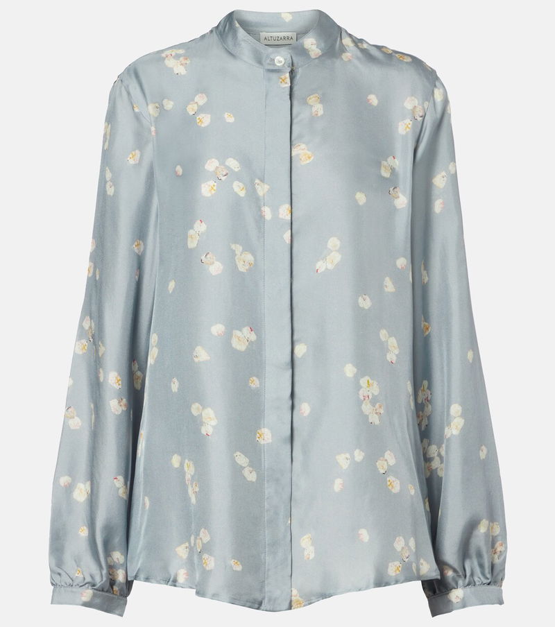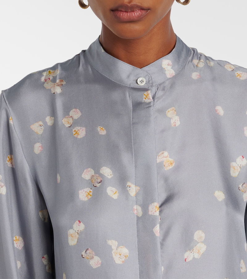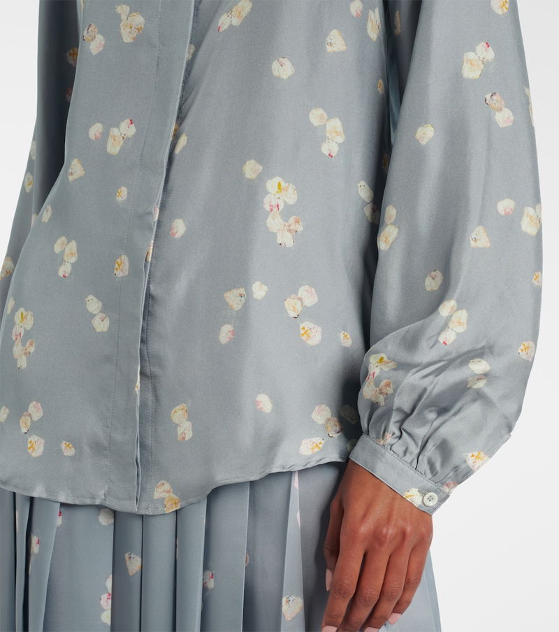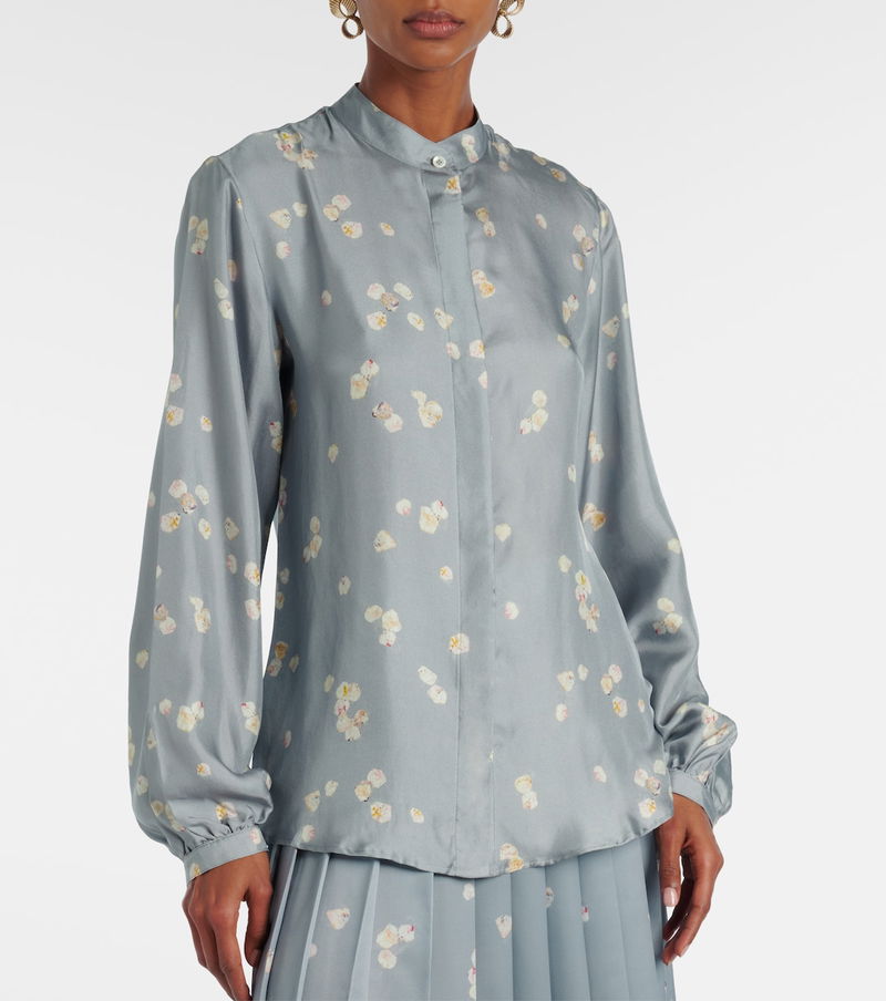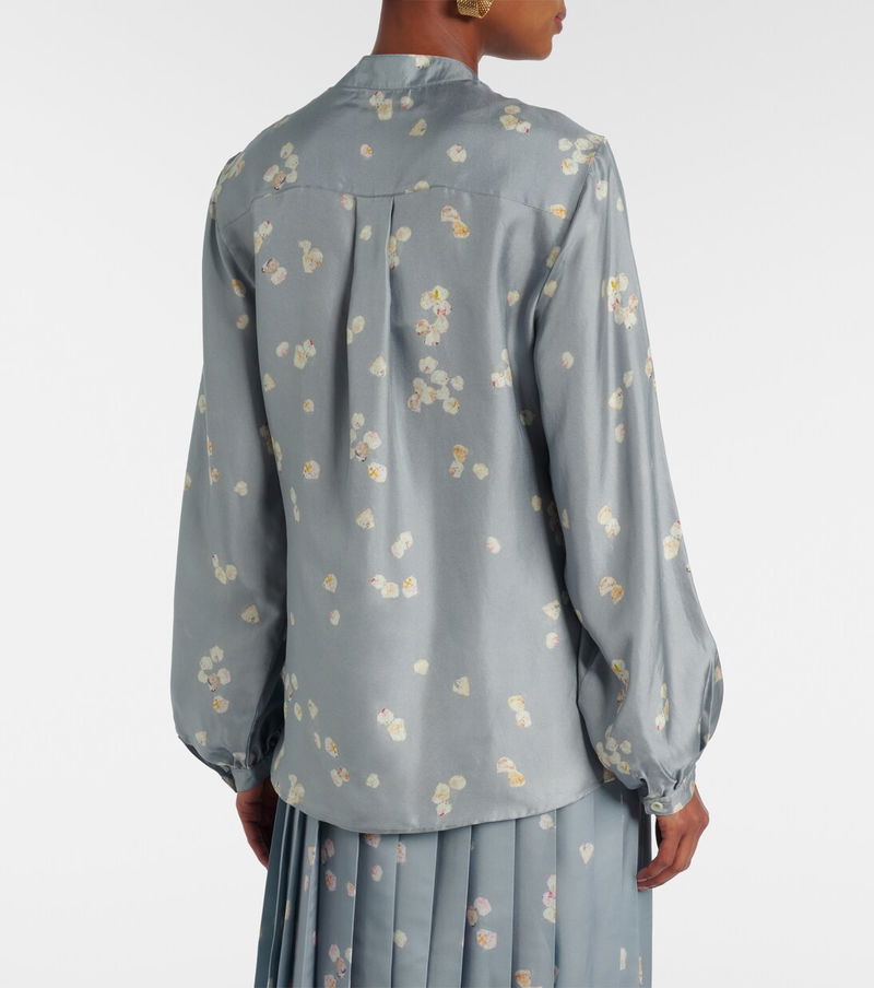 Cropped Floral-Print Stretch-Silk Wrap Blouse