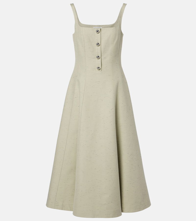 Crafted from a cotton blend, the Orrie midi dress showcases a buttoned bodice and a flared skirt.