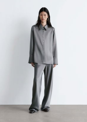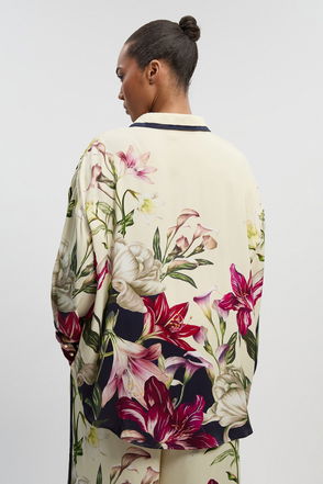 Shirt, Floral-print, Satin, Buttoned cuffs, Button fastenings through front, Non-stretchy fabric, Mid-weight fabric.