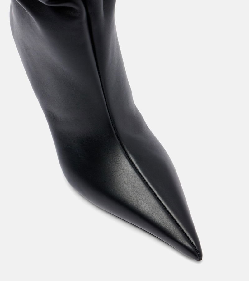 Amina Muaddi has quickly become a fashionable favorite thanks to its eye-catching and sculptural shoes. Made in Italy from black leather, the Anok boots are a mid-calf pair with 90mm stiletto heels and a chic slouchy silhouette.