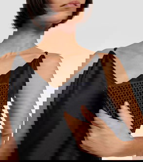 Complete your look on a glamorous note with the Paloma Micro satin clutch from Amina Muaddi. Beautifully embellished with crystals, this piece has a detachable chain and will easily fit your essentials for the evening.
