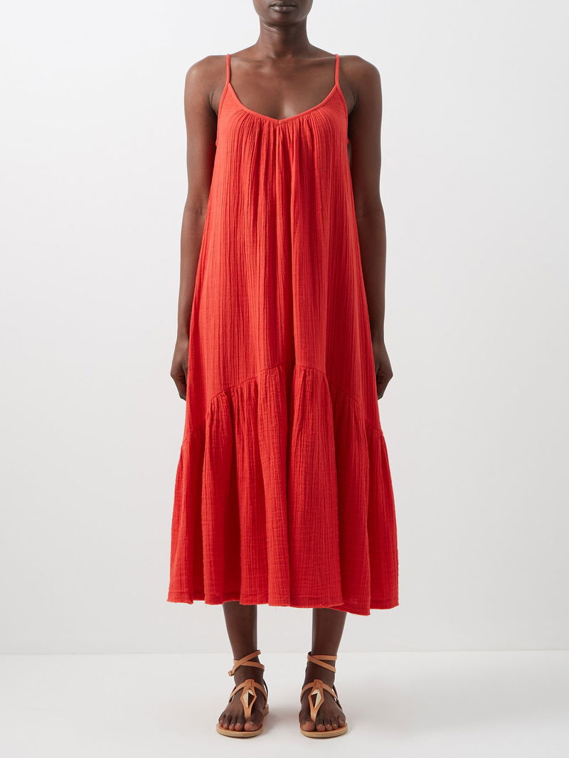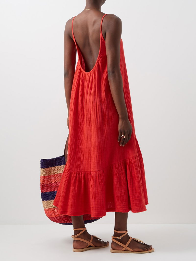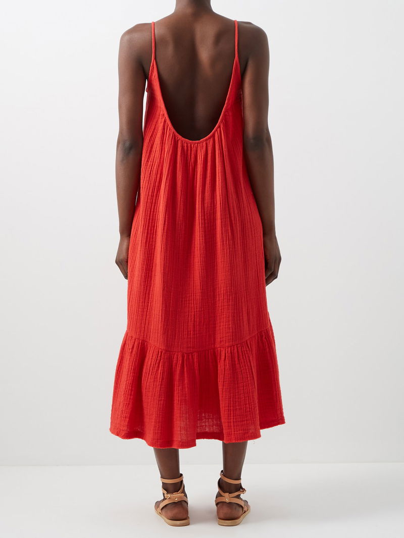 Anaak's red Rosetta dress is exclusive to MATCHESFASHION, and shaped to a loose silhouette from Indian-woven voile with a softly crinkled finish and scooped back.