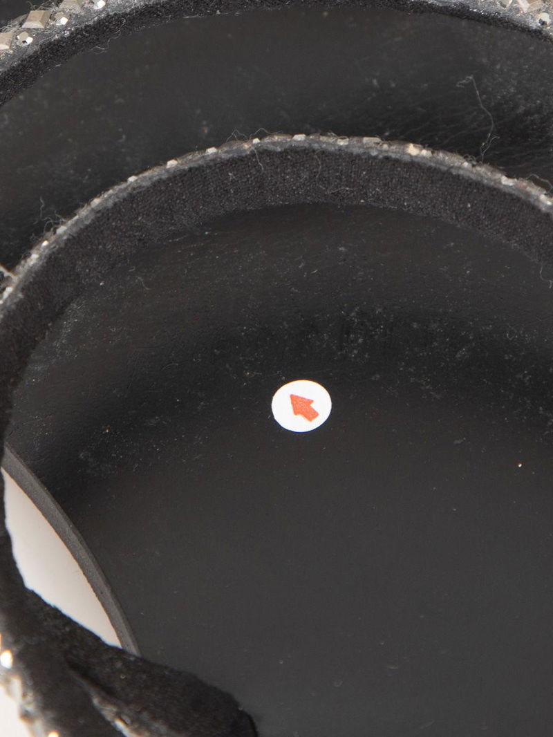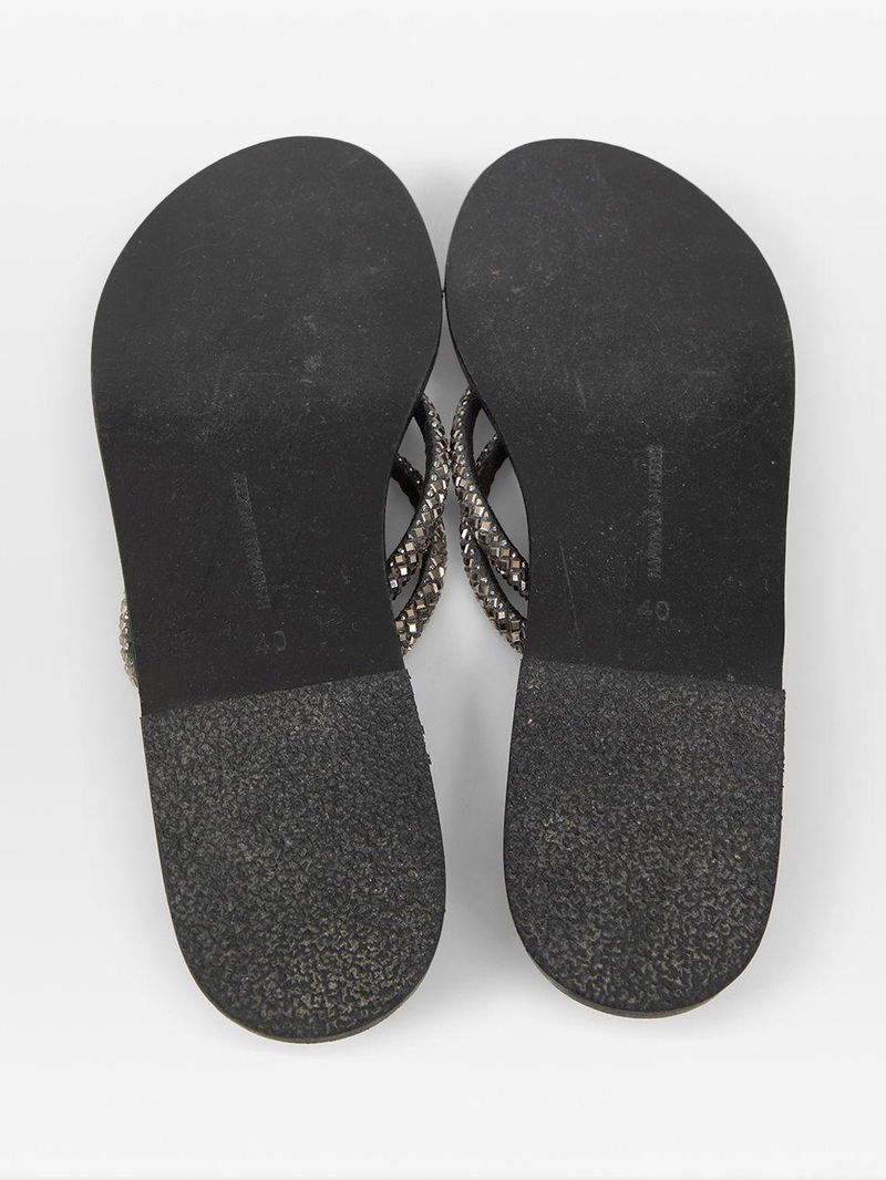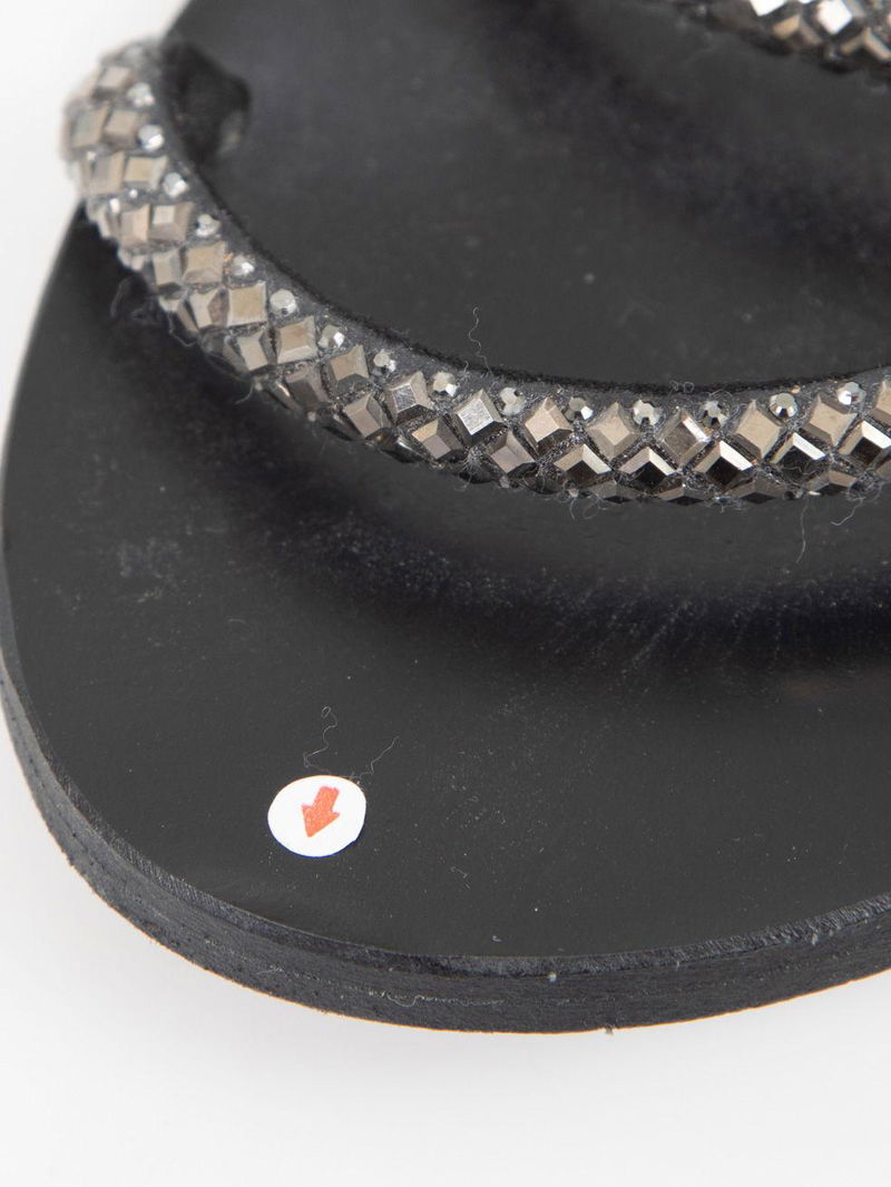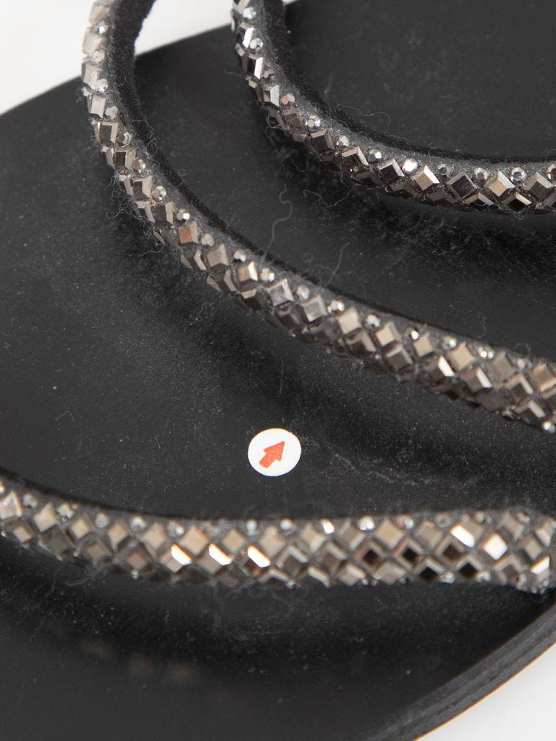 Black leather and diamunté flat sandals in good, pre-worn condition. See images for signs of wear. Comes with original dustbin.