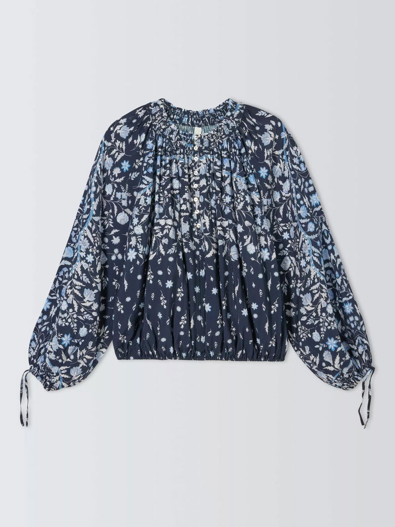 A modern twist on a classic silhouette, the Angel blouse balances intricate printwork with a sharp, contemporary edge. The design features a rounded neckline that offers a clean, sophisticated frame, while the tie detailing at the sleeves provides an effortless way to adjust the fit.