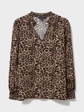 Cassie Leopard Print Tie Neck Top, Leopard