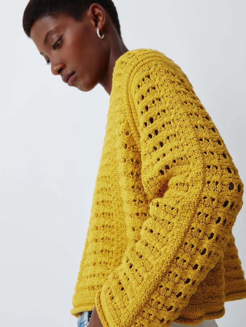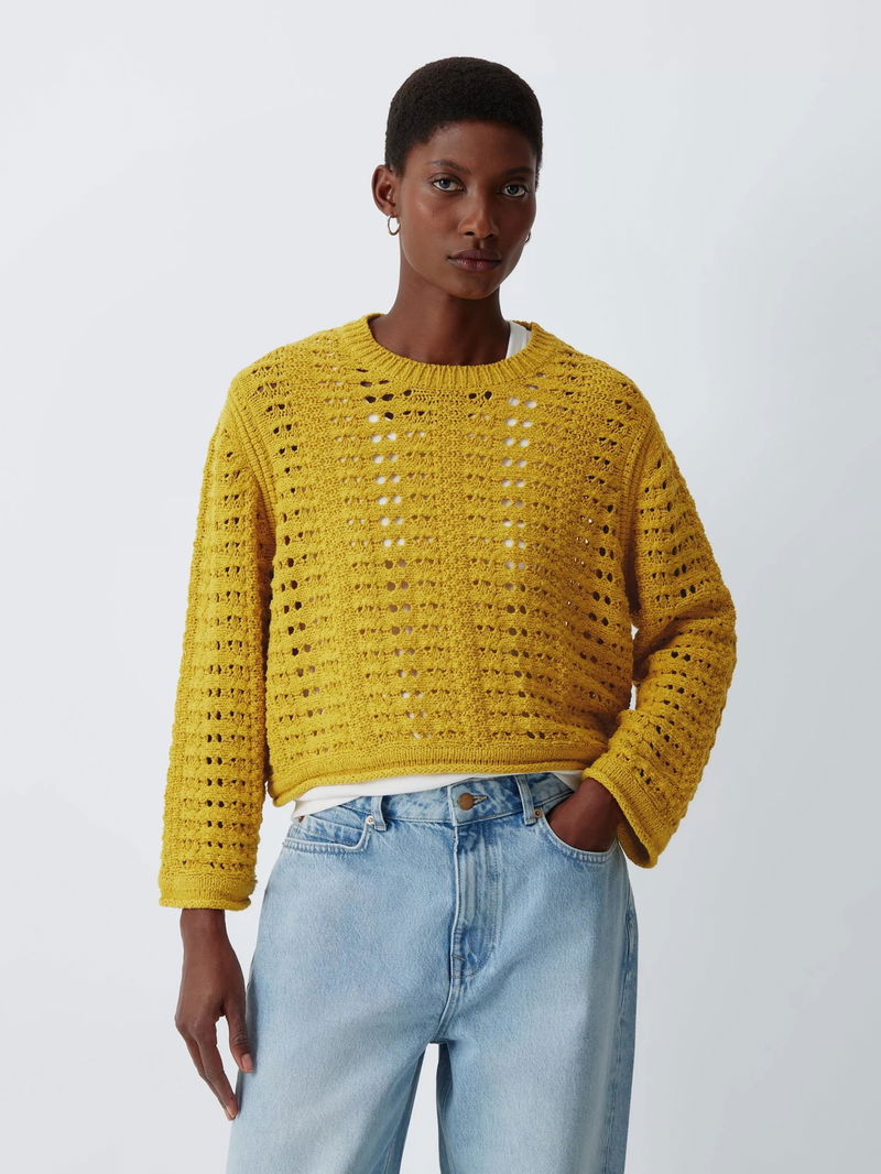 Crew Neck Open Stitch Jumper, Light Yellow