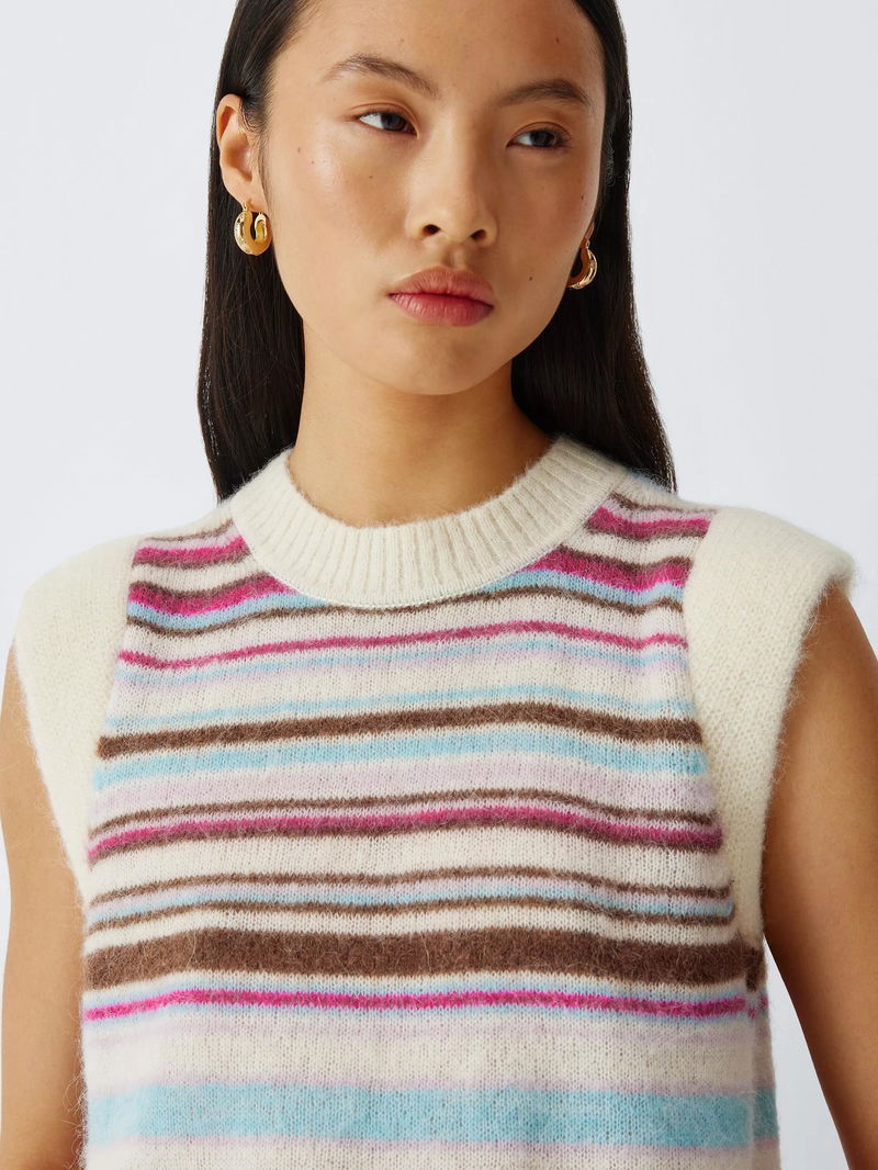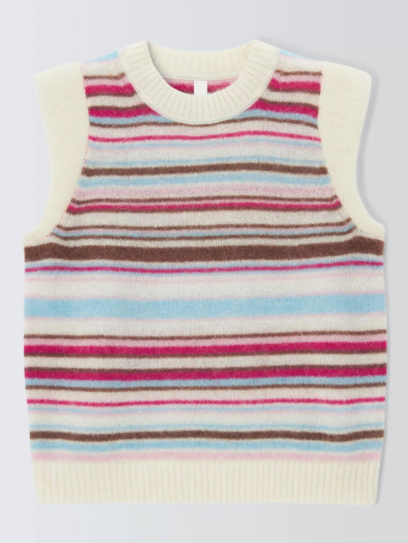 Ideal for layering while adding a pop of colour, this wool-blend sweater vest is designed with a classic crew neck, cap sleeves and ribbed trims.