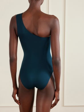 Made in a shiny fabric, this swimsuit has drawstring sides that offer both versatility in the fit and shaping around the waist.