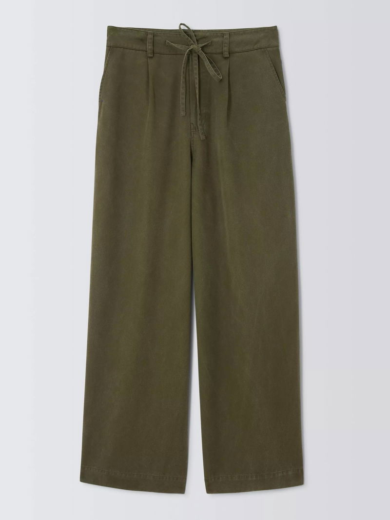 Straight utility trousers. Tie waist detail. Lightweight fabric.