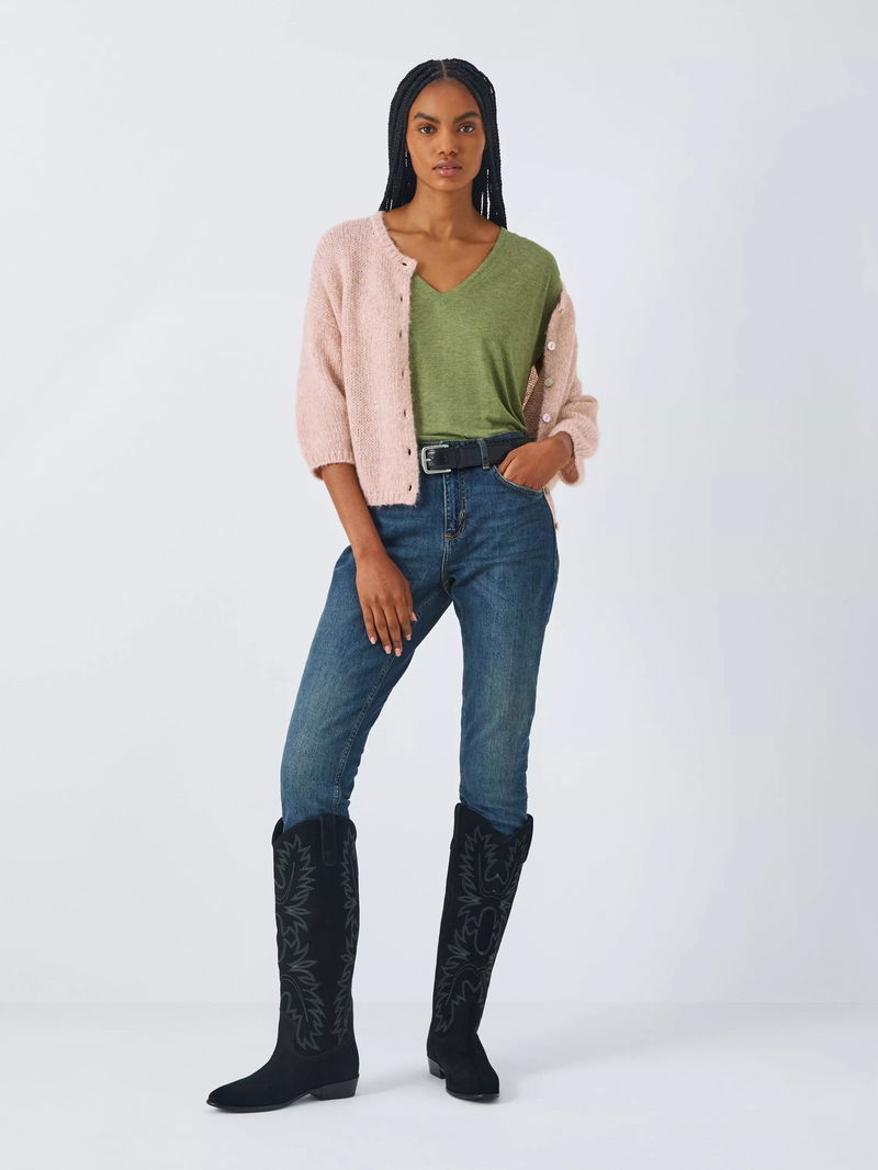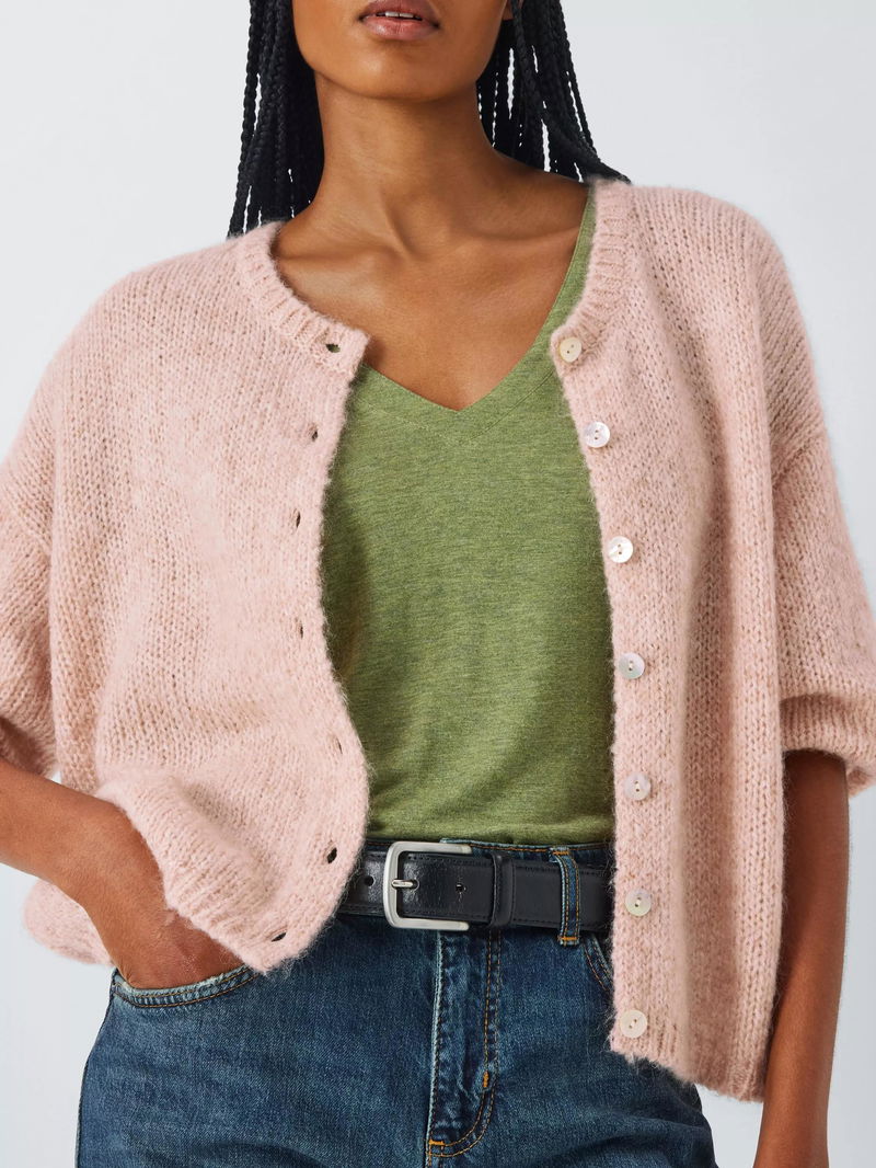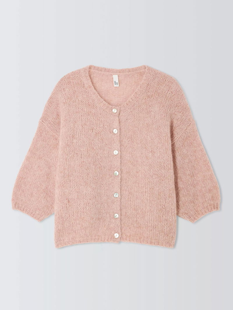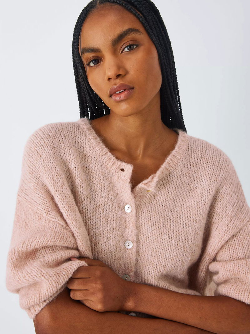 DetailsFluffy knit cardiganButton down frontFabric blend including woolHand washStylist's NotesSimply team with wide leg denim and trainers for a laid-back vibe. Made using recycled materials, helping us to reduce our impact on the planet.
