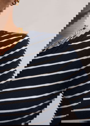 Crew neck, long sleeve top. Ribbed texture. Cotton-rich.
