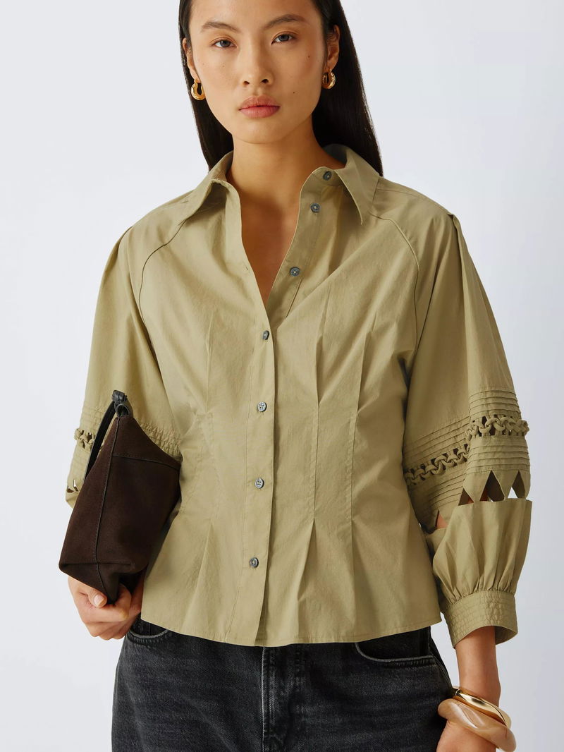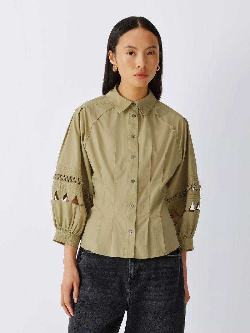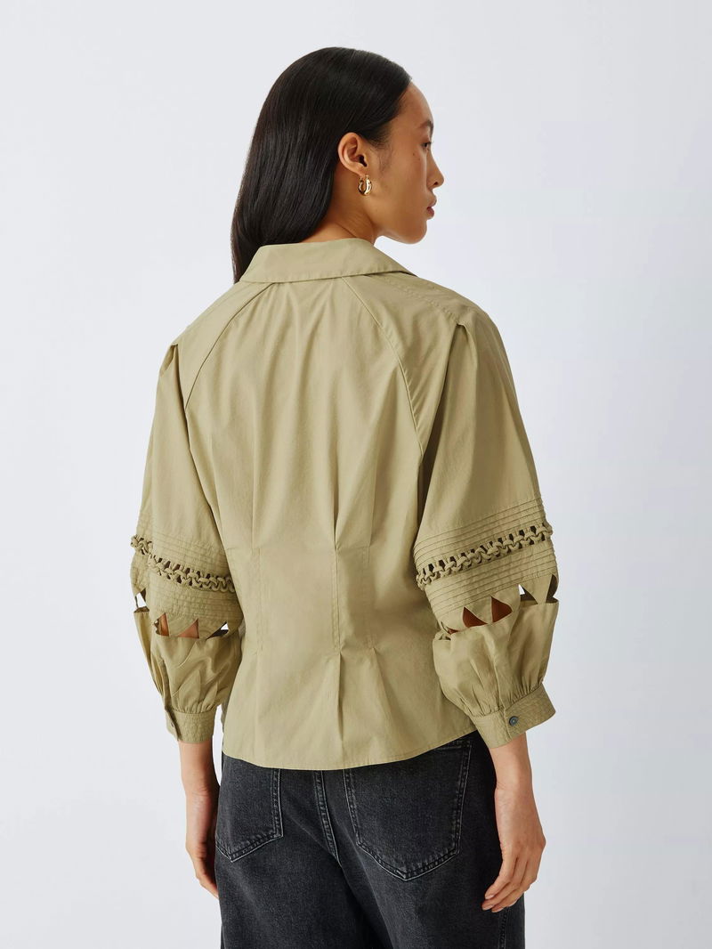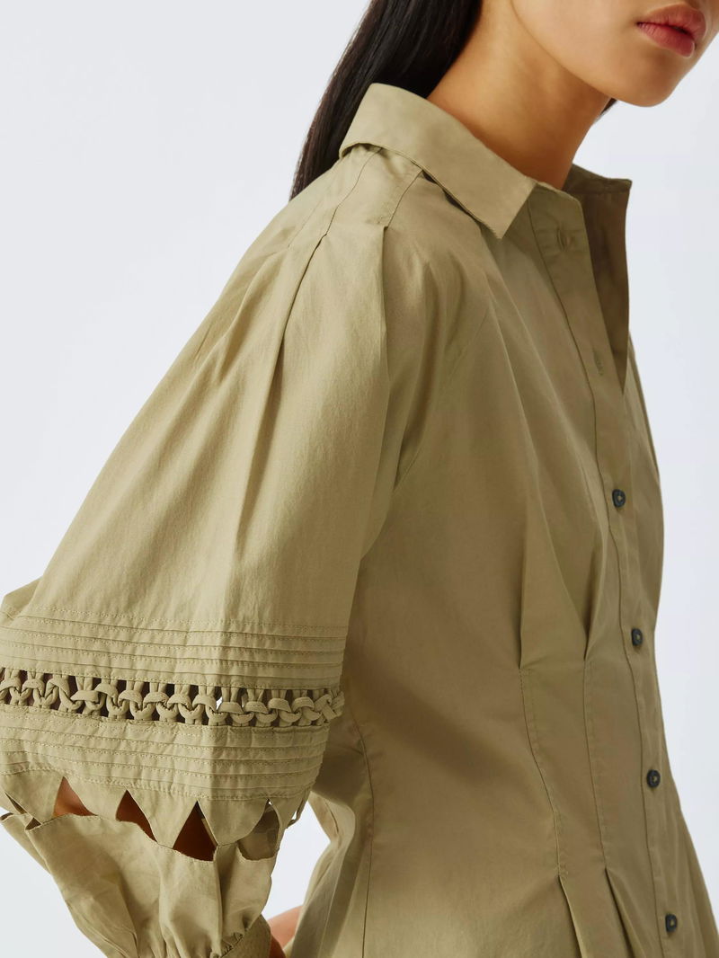 Valentine Cut Out Sleeve Shirt, Light Khaki