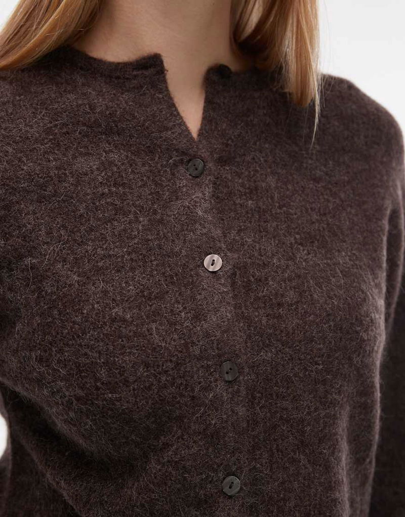 Alpaca And Wool Cardigan With Button Front In Dark Brown