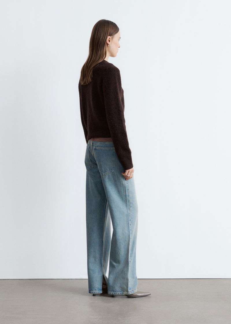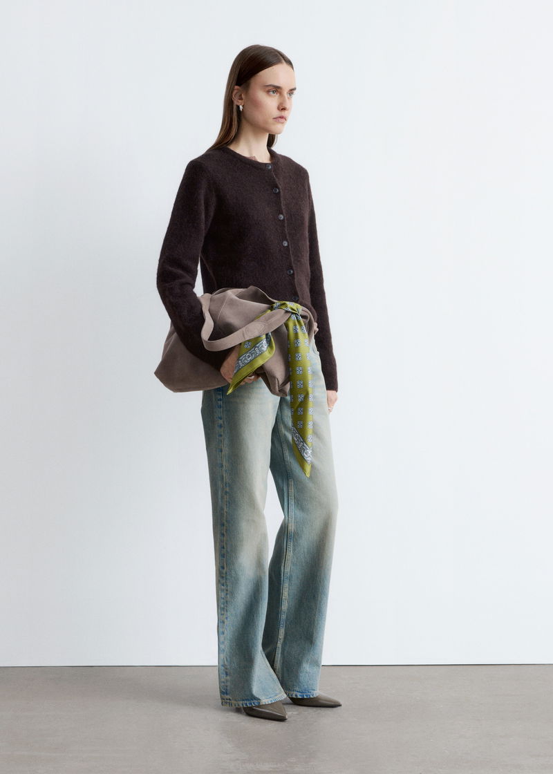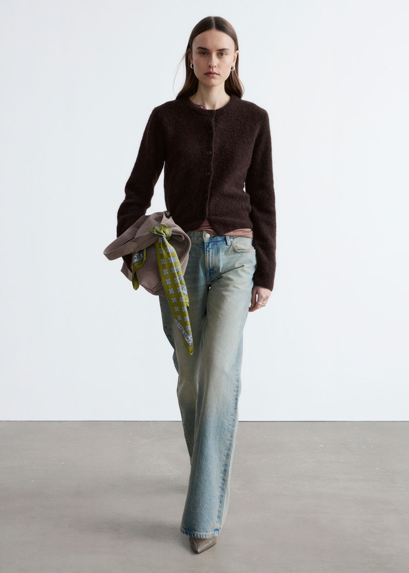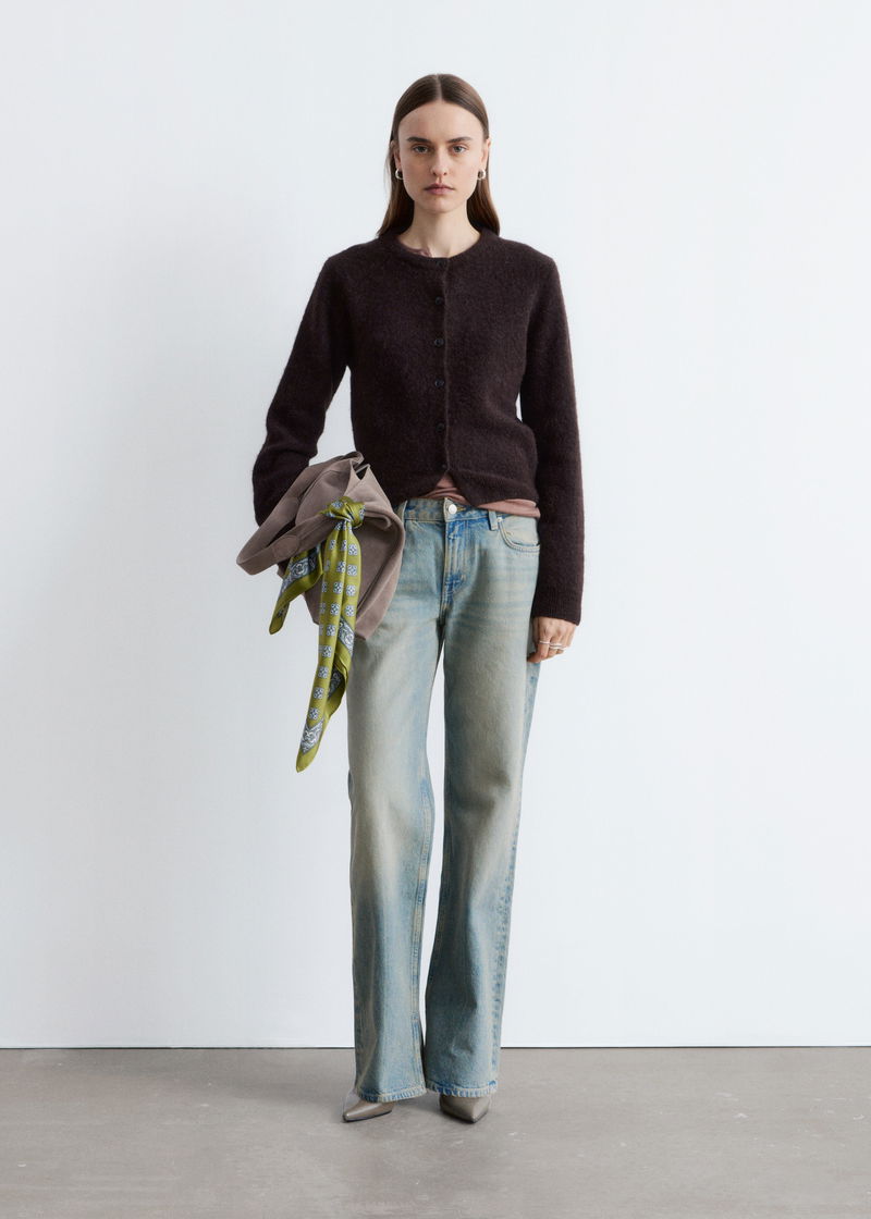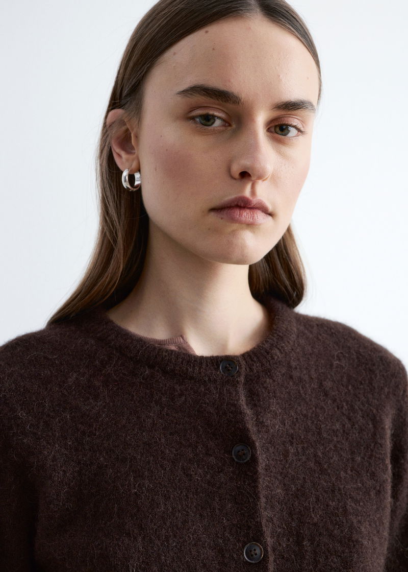 Knitted from a textured wool-alpaca blend, this cardigan is cut in a straight silhouette featuring ribbed trims and a button front.