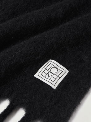 Slim scarf made from a wool and alpaca blend with long fringes along the short sides.