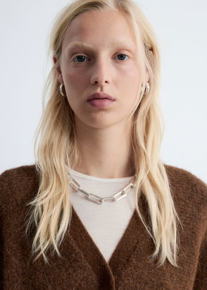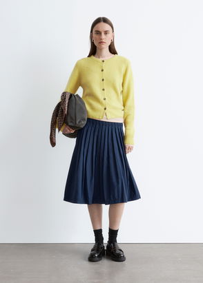 V-neck cardigan in soft alpaca wool blend with slightly voluminous sleeves and self-covered buttons.