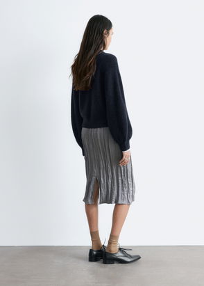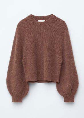 Alpaca wool blend knit jumper with gently gathered shoulders and puff sleeves.
