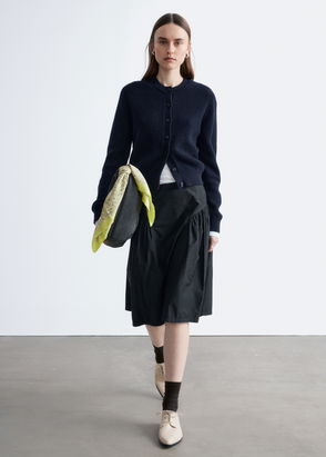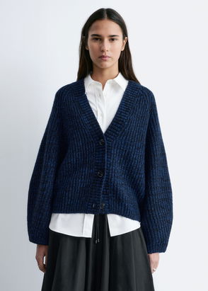 Long-sleeve cardigan featuring an asymmetric, single-breasted lapel. Slim fit V-cut neckline.