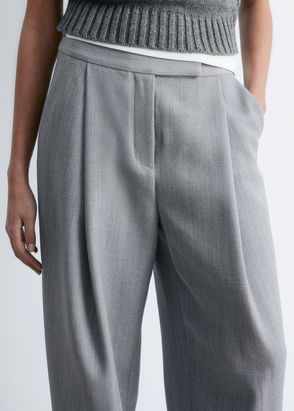 High-waist wool-blend trousers featuring a thin belt accented with a silver-toned buckle. Belt loops. Zip fly with hook and bar closure. Slanted side pockets. Welt pockets at the back.